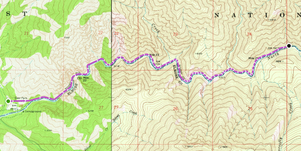 - Continue 7.6 miles as NF 384 curves down into the North Fork drainage along Little Owl Creek
