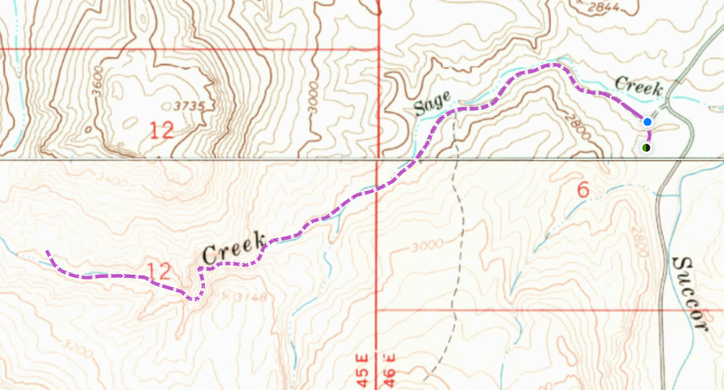- Bring your own water, there is no reliable water source in the area – Sage Creek and Succor Creek are both downstream from farms and may contain livestock excreta and pesticides