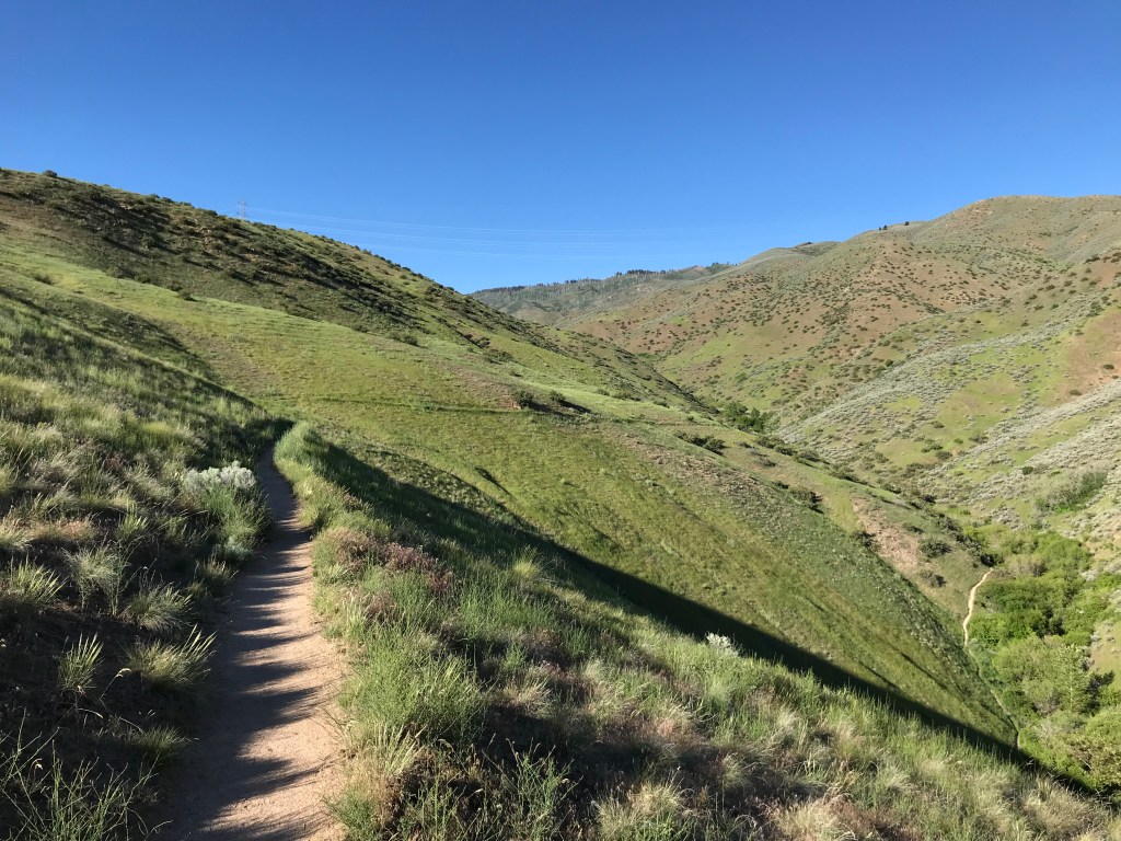 This loop offers all the best that a foothills trail can provide – shady, riparian habitat along a picturesque creek, hillsides blanketed with sagebrush and arrowleaf balsamroot, and excellent views of the Treasure Valley and Boise Mountains. If you’re in Hidden Springs (or willing to drive a little extra from downtown), I think this is the best loop to start with.
