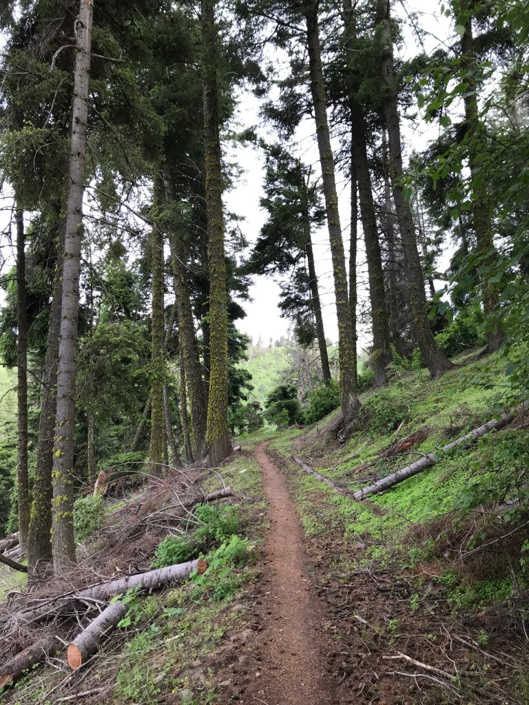 I much prefer this loop, which starts on Freddy’s Stack Rock Trail from the lower “trailhead” at the intersection with Bogus Basin Road. At the big intersection with Eastside, Sweet Connie, and Mr. Big, this route turns north onto Eastside before dropping down onto Sinker Creek, one of my absolute favorite places in the system. Here, the woods are dense, tall, and wet, with mosses and thick grasses blanketing the forest floor. It’s akin to a slice of the Pacific Northwest’s rainforests tucked into a beautiful little ravine. The hike returns to the intersection on Mr. Big before retracing Freddy’s SRT to the trailhead.