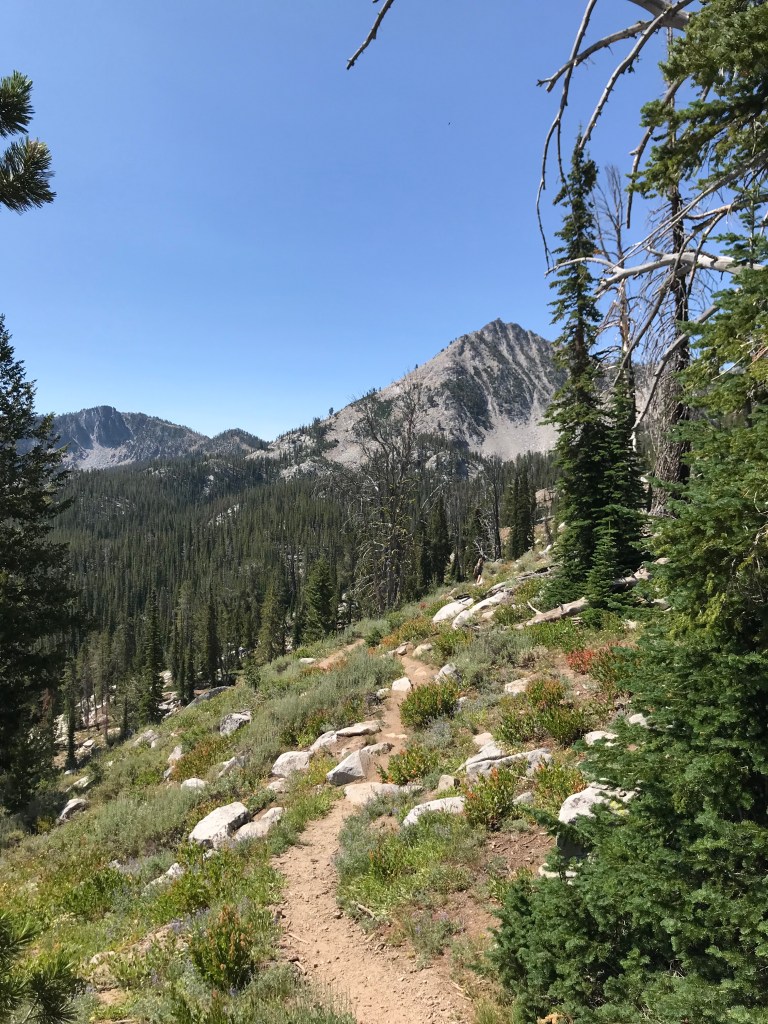 If you skip all the spurs on the return, the trail is about 4.6 miles with steady elevation gain from Little Rainbow Lake to the saddle between Rainbow Basin and Big Trinity Lake. Ensure you bring enough water, electrolytes, and snacks for the entire trail if you plan on visiting every lake. We brought a picnic lunch to enjoy at a campsite at the trailhead, which I’d absolutely recommend, considering the drive time back to Boise.