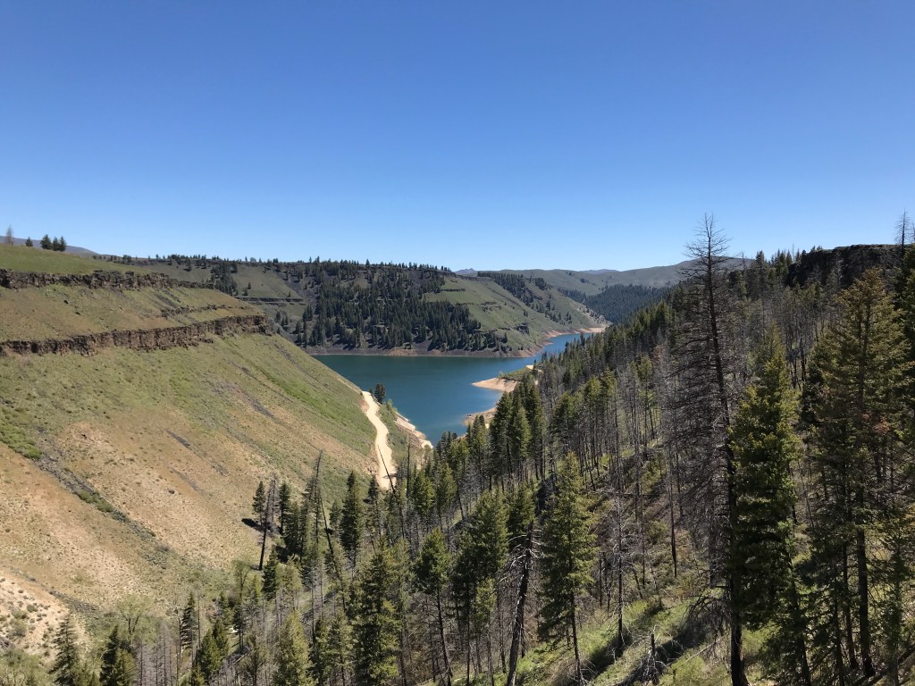 While most Boiseans are familiar with our local reservoirs, Lucky Peak and Arrowrock, a surprising number haven’t made the trip to nearby Anderson Ranch Reservoir. Only 20 miles northeast of Mountain Home, where the sagebrush hills meet the forested mountains of the Trinity and Boise Ranges, the lake is held back by an earth rockfill dam that was the tallest of its kind in the world when completed in 1950. While it’s calm waters and shady grounds may be more popular with boaters and campers, there is plenty of good hiking along the reservoir, including the Wilson Flat Loop, which has quickly become a new favorite of mine. If you’re seeking a moderately challenging and beautiful eight-mile loop less than an hour and a half from Boise, this trail will sate you.