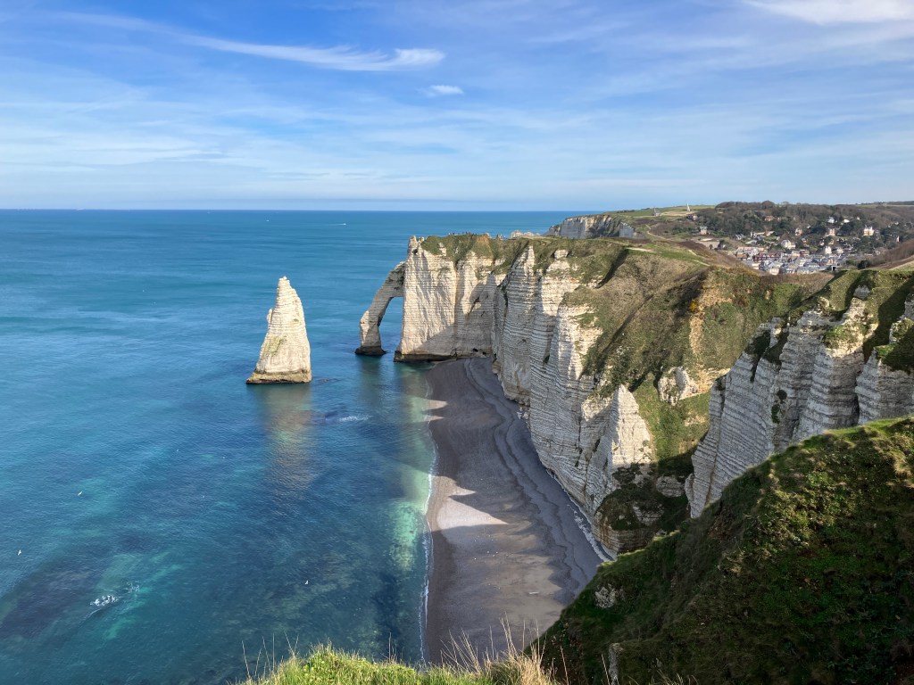 The paved path along the Cliffs of Étretat offers stunning views of the namesake limestone bluffs and formations jutting out from the English Channel. Famous impressionist Claude Monet spent time here honing his craft by painting the land and seascapes at different times of the day, highlighting how different shades and angles of sunlight create vastly different results. Further south in the countryside, the small town of Mortain is built in a gorge home to two large waterfalls on the Cance River, one of which is featured in the cover photo above. Both cascades are easily reached from the church in the center of town.