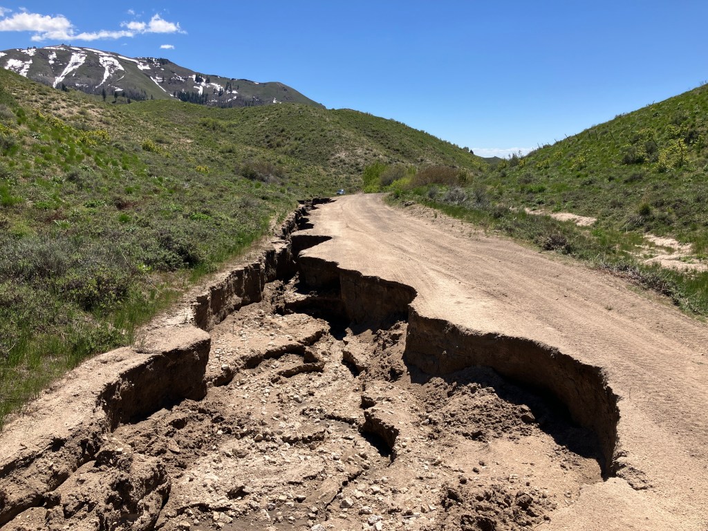 As previously mentioned, if the deteriorating road surface (evidence below) prevents you from making it to the trailhead, find a place to park along the side and hoof it. There isn’t much room to park at the trailhead anyway, so it may actually be easier to park lower and add mileage to your hike.